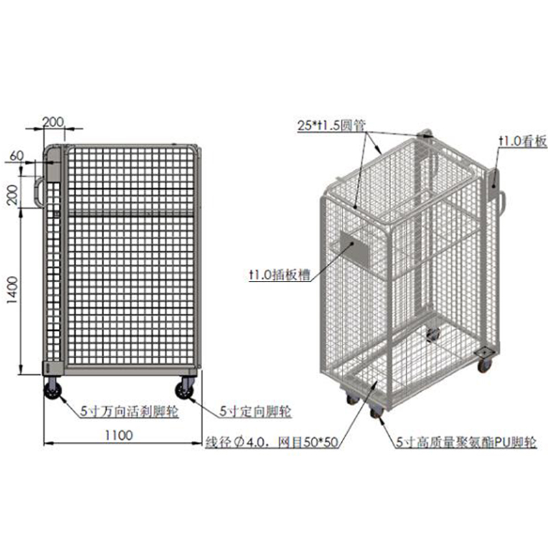 物流台車又叫載貨(huò)台車(chē)或籠車,周轉車,是一種安(ān)裝(zhuāng)有四隻腳輪的運送與儲存物料的單元移動集裝設備。常用於大型超市的(de)物流配送或工(gōng)廠工序間(jiān)的物流周轉。物流台車是物流業(yè),生(shēng)產業搬運利器,可使生產線空間盡其運作。