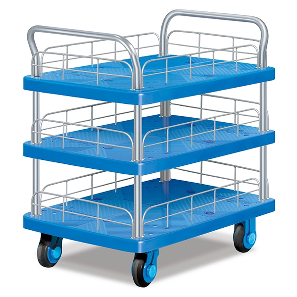 三層雙扶手超靜護欄車由塑料車板、粉末噴塗扶手(可折倒(dǎo)、固定)、行走輕便(biàn)及超安(ān)靜腳輪(尼龍支架、鐵板支架(jià))等組(zǔ)成。