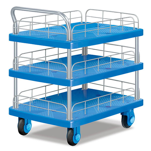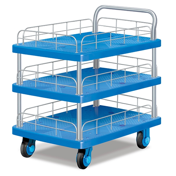 三層單扶手(shǒu)超靜護欄車由塑料車板、粉末噴塗(tú)扶手(可折倒、固定)、行走輕便及超安靜腳輪(尼龍支架、鐵板支架)等(děng)組成。