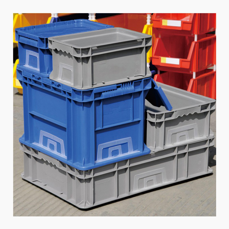 可堆式周轉箱可與橫梁托盤貨架(jià)(周(zhōu)轉箱放置在托盤上)、隔板貨(huò)架、滑移(yí)式貨架等配合使用。